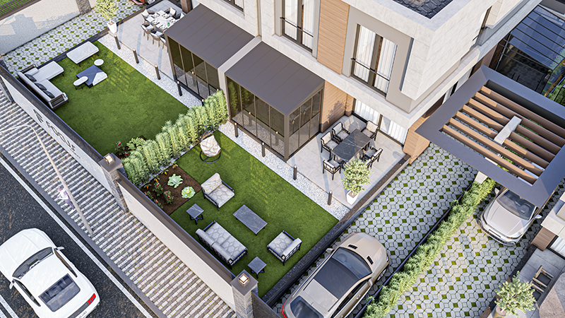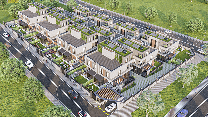 Elektrikli araç sarj istasyonu ile kendi elektriğini üreten sistemden, aracınızı minimum 2000Km sıfır maliyetle sarj edeceğiniz akıllı villalar.